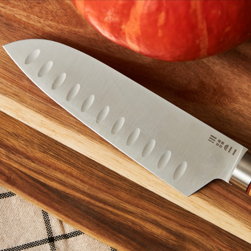The ETCH style is a bold fusion of Japanese minimalism and French functionality. Designed in Paris, our knives are distinguished by clean lines and a balanced silhouette that fits comfortably in any hand. This minimalist design makes no compromises on performance, offering cooking enthusiasts a tool that is as beautiful to behold as it is efficient to use every day.
